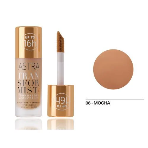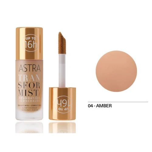 Astra Transformist Foundation + Concealer. Su fórmula innovadora de doble acción actúa sobre la piel como un tratamiento de cirugía estética: efecto lifting, piel impecable y tono uniforme. Se mezcla y adhiere a la piel minimizando las imperfecciones gracias a su alta cobertura.
